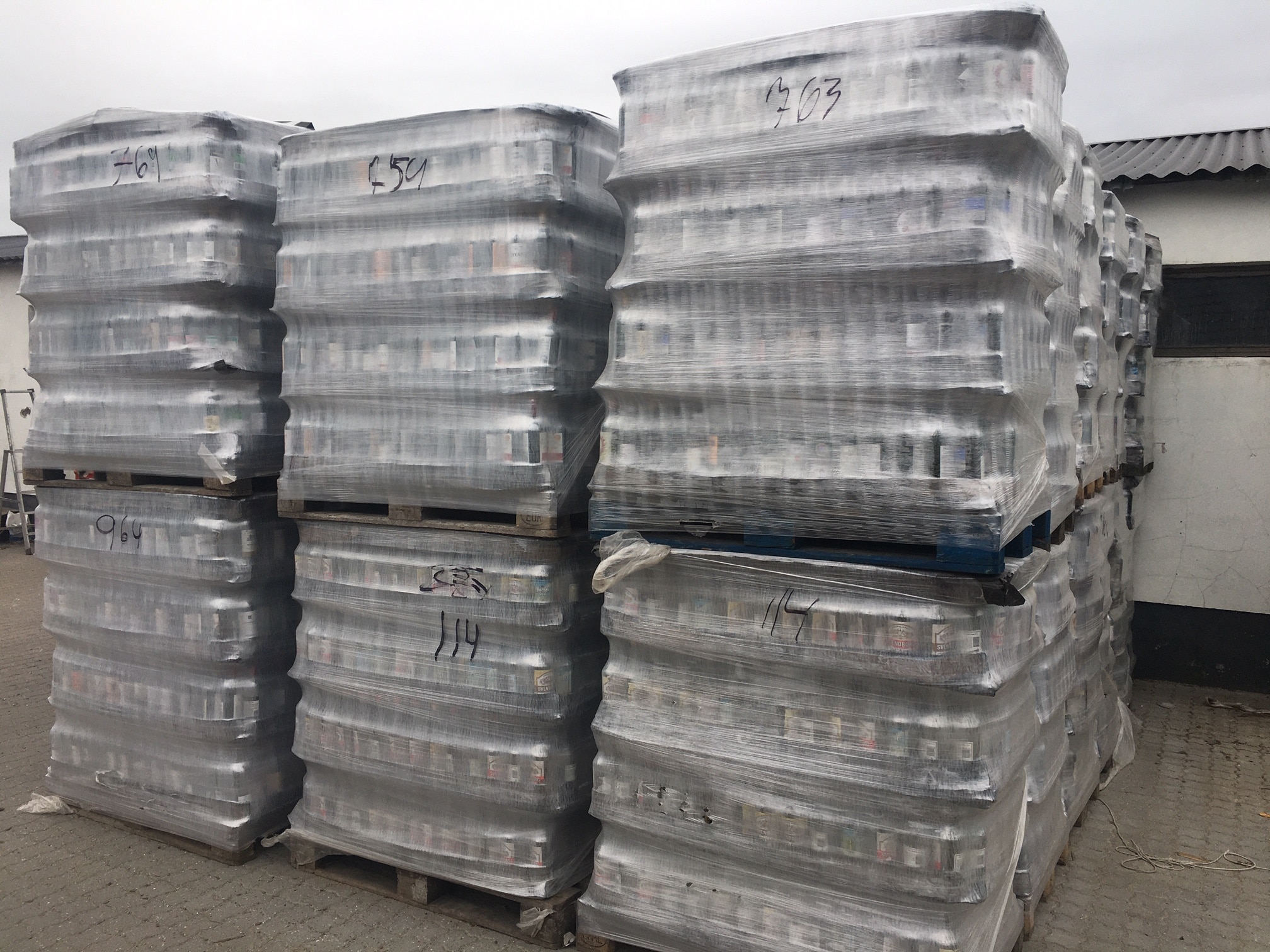 Flaske afhentning hos foregår sådan, at flaskerne lægges i en palle med pallerammer, der stilles gratis til rådighed af PH Flasker. En palle med pallerammer er en Eur-palle, hvorpå der placeres såkaldte pallerammer i takt med at der lægges flere og flere flasker i. Alternativet kan være en 660 liters lukket cointainer på hjul. Når pallerne er klar, står vi for afhentning af flaskerne hos dig.